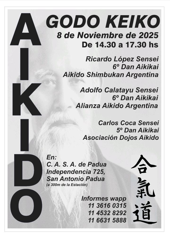 Sensei Adolfo Calatayu ( 5to DAN AIKIKAI ), estará dando clase especial en Mar del Plata, viernes 25 de agosto, MEIYO Dojo.
